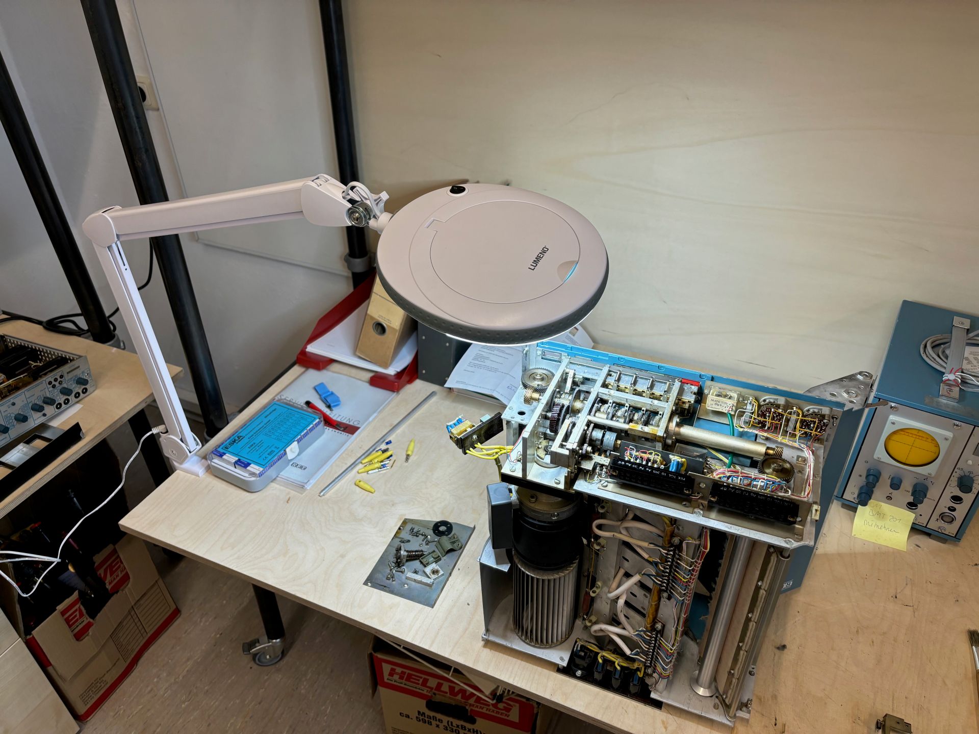 Zur Langen Nacht der Wissenschaften 2025 öffnete das 3ioS-Team die Türen des Temporären Objektlabors. Gemeinsam mit Studierenden der Medizintechnik und der Humanwissenschaften präsentierte es den Besucher_innen Forschungsresultate des laufenden Sommersemesters, welches der Dimension Stress gewidmet war. Funktionsweisen von Biomonitoring-Geräten der Historischen Medizintechnischen Sammlung wurden erläutert. Unter anderem simulierte das Team die Herzfrequenz mittels eines instandgesetzten Elektrokardiografen. Mithilfe von objektbiografischen Techniken setzten sich die Besuchenden auf künstlerischer Art und Weise mit den Sammlungsobjekten zum Thema Stress auseinander.