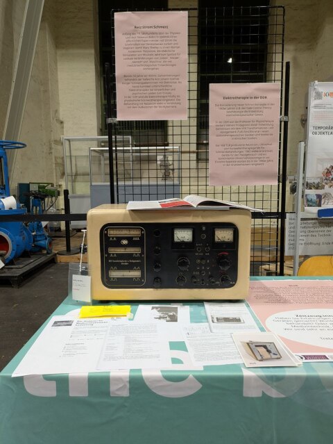 Unter anderem wurde das Reizstromgerät TuR RS 2-1 gezeigt. Dieses diente zur Stimulation von Nerven und Muskeln. Unter anderem kam es in der Schmerztherapie und in der Muskel- und Nervenfunktionsdiagnostik zum Einsatz. Die Besuchenden des Museumsjubiläums waren eingeladen, sich über das Projekt und die Geräte zu informieren und sich über eigene Erfahrungen mit den Geräten auszutauschen.