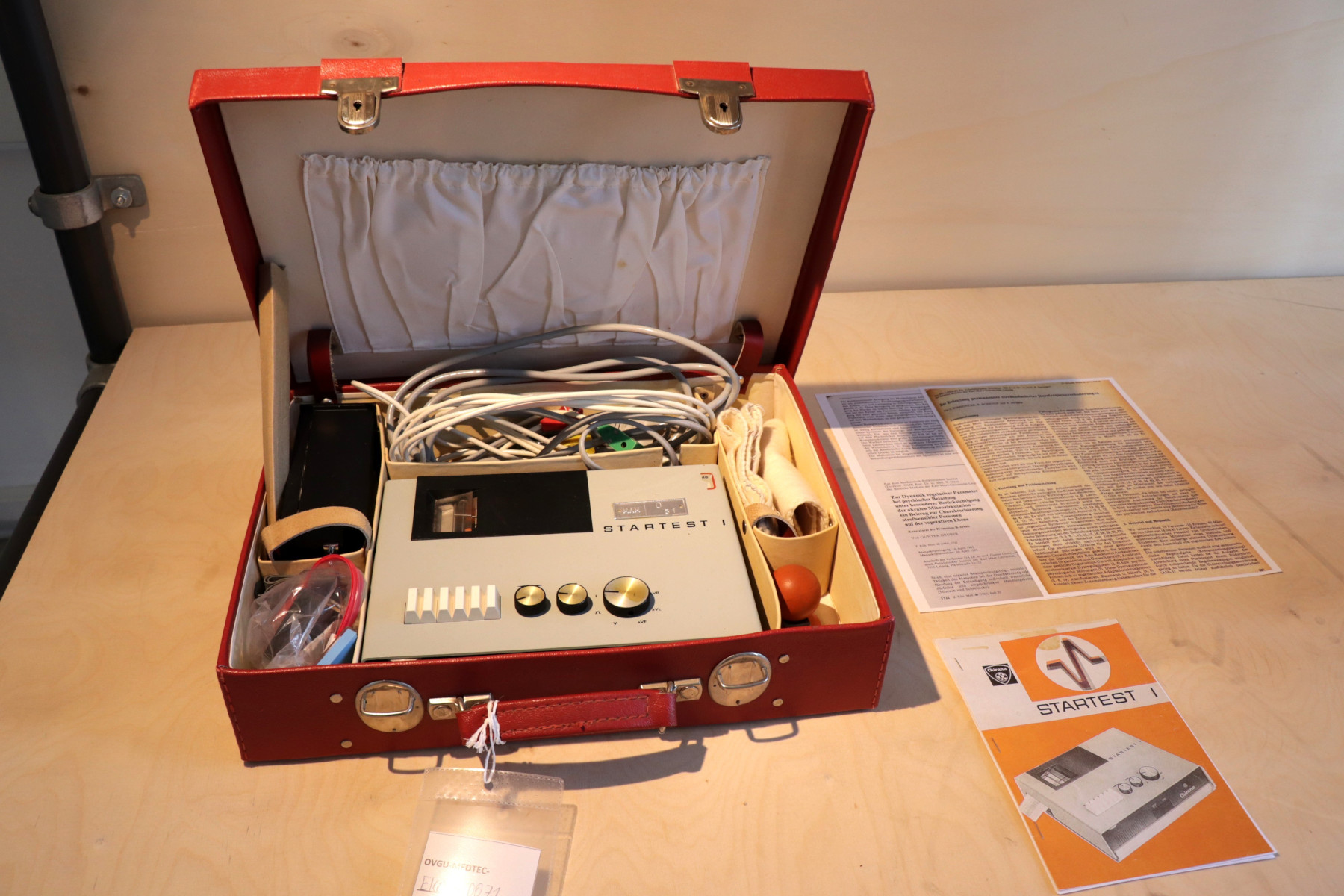 Der Startest ist ein batteriebetriebener EKG, der um 1974 von Chirana in der ČSSR entwickelt wurde. Mobile EKG-Geräte wurden in wissenschaftlichen Versuchen verwendet, um den "natürlichen" Stress zu messen – z.B. von Medizinstudierenden während ihrer Abschlussprüfung, Kunstflieger_innen im Flugzeug und Fußballfans vor dem Fernsehspiel.