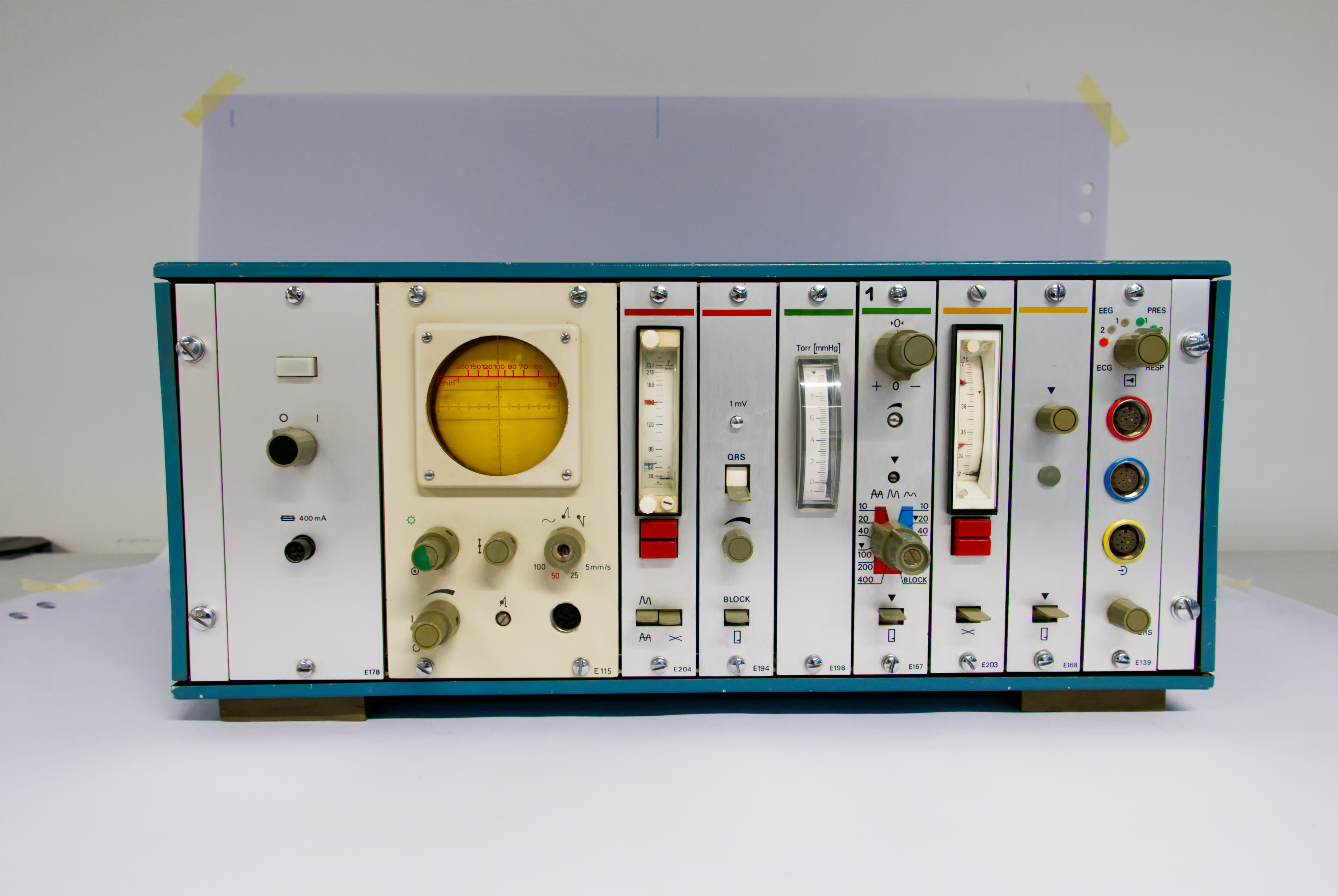 Dominique Merdes beschäftigt sich in seiner_ihrer Forschung mit den Biomonitoren der Sammlung. Biomonitore kamen in den 1950er Jahren in der Intensivmedizin auf. Zunächst dienten sie besonders der Überwachung und Regulierung der Herzfunktion von Patient_innen. In den 60er und 70er Jahren kamen weitere Funktionen wie die Darstellung der Atemfrequenz, des Blutdrucks und der Körpertemperatur hinzu. Biomonitore waren auf verschiedene Weise – beispielsweise über die Haut, die Nase und das Blut – mit den Patient_innen verbunden. Dadurch markierten sie eine Verschiebung in den Mensch-Maschine-Beziehungen, die sich schließlich über das Fernsehen auch auf den Bildschirmen in den Wohnzimmern gesunder Menschen vollzog.